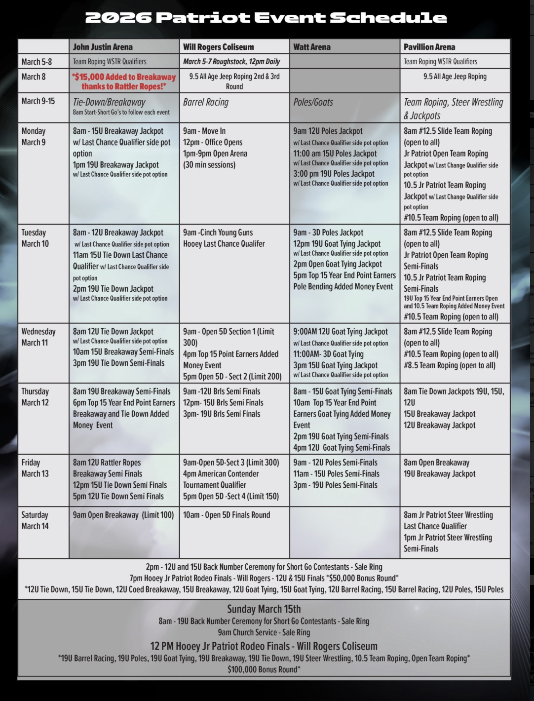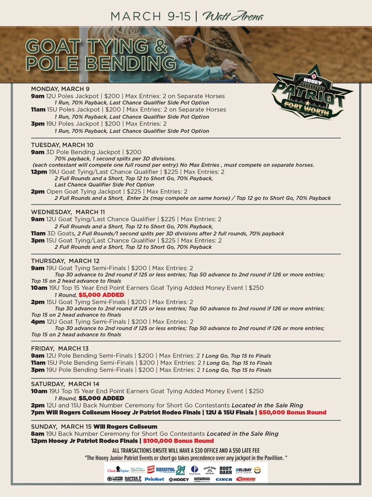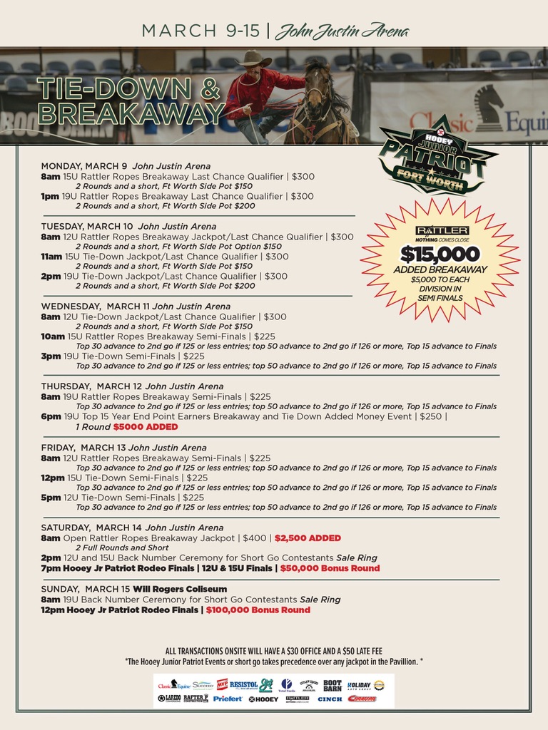 The Patriot event returns to Fort Worth March 4-15, 2026, with big payouts and plenty of opportunity for youth rodeo contestants.